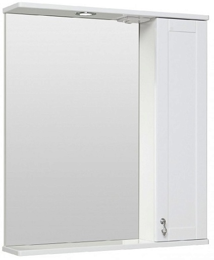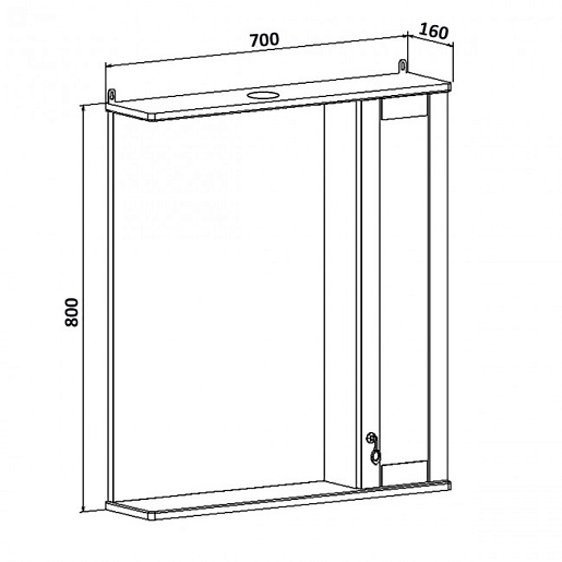 - Зеркало Мерида 70: Зеркальный шкаф оборудован одним врезным светодиодным светильником 220В и розеткой с выключателем. Справа - шкафчик с распашным фасадом и двумя внутренними полками. Петли со встроенным доводчиком, ручка - 1шт.