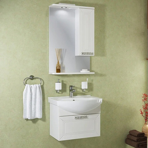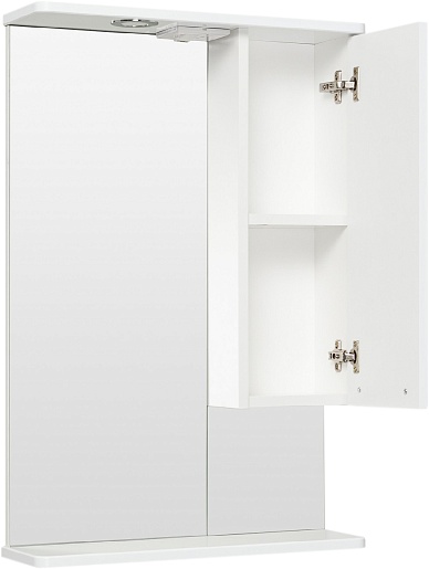 - Зеркало Монро 53: Зеркальный шкаф оборудован одним врезным светодиодным светильником 220В и розеткой с выключателем. Справа - шкафчик с распашной дверцей и одной внутренней полкой. Под зеркалом - нижняя полка. Петли со встроенным доводчиком, ручка - 1 шт.