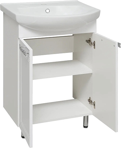 - Тумба под раковину Монро 55: Тумба под умывальник напольная с двумя распашными фасадами и одной внутренней полкой. Петли со встроенным доводчиком, ручки - 2 шт., ножки хром - 2 шт., ножки пластик - 2 шт.