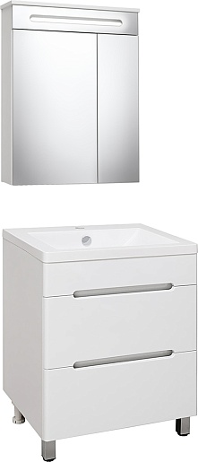 Описание: Тумба под умывальник на ножках с двумя выдвижными ящиками. Ящики — на шариковых.направляющих скрытого монтажа с доводчиком, ножки хром — 2шт, ножки пластик — 2шт.