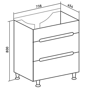 Описание: Тумба под умывальник на ножках с двумя выдвижными ящиками. Ящики — на шариковых направляющих скрытого монтажа с доводчиком, ножки хром — 2шт, ножки пластик — 2шт.