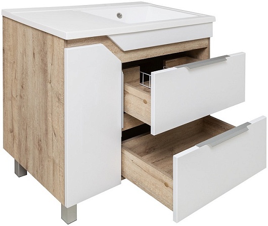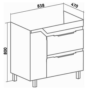 Описание: Тумба с двумя выдвижными ящиками и распашной дверкой. Ящики на шариковых направляющих скрытого монтажа с доводчиком. Петли со встроенным доводчиком.