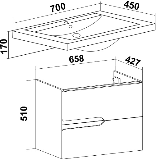 В комплекте: тумба, раковина, зеркальный шкаф, крепеж.