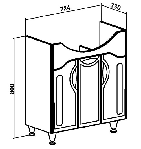 Описание: Три дверцы, петли со встроенным доводчиком. Две хромирование ножки спереди и две пластиковые ножки сзади.