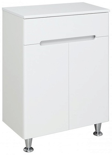 Полупенал на ножках с одним выдвижным ящиком и двумя распашными дверками. В нижнем отделении - одна внутренняя полка. Петли со встроенным доводчиком, ящик на шариковых направляющих полного выдвижения.
