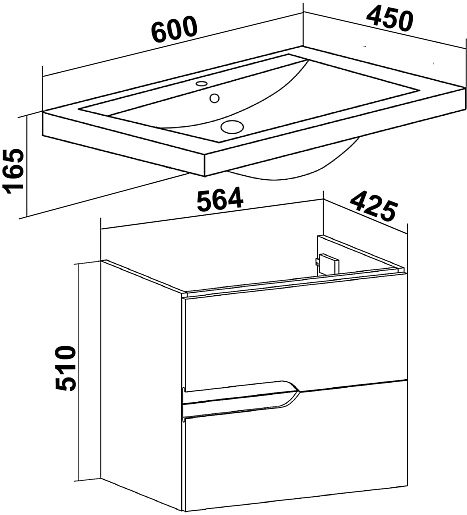 Тумба под раковину Runo Стокгольм 60 - арт. 00-00001123 (4620750029784).