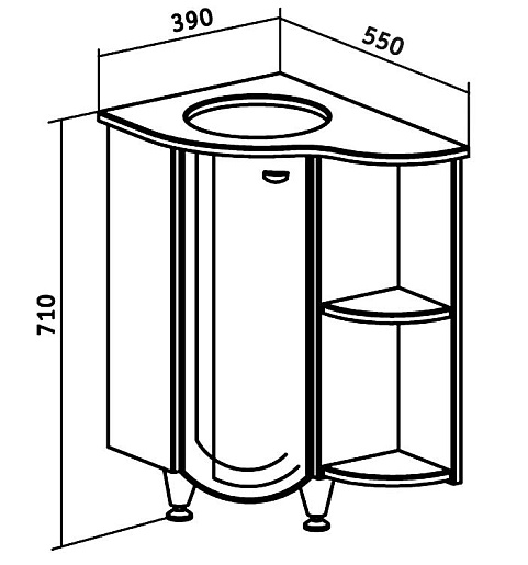 Габариты тумбы, ШхГхВ 55х39х71 см