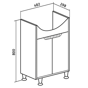 - Тумба под умывальник на ножках с двумя распашными дверцами и одной внутренней полкой.