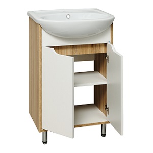 - Тумба под умывальник на ножках с двумя распашными дверцами и одной внутренней полкой.
