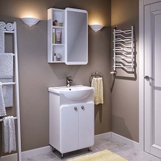 - Тумба под раковину Капри 55: тумба с двумя дверками и внутренней полкой. Петли со встроенным доводчиком.