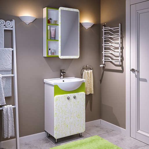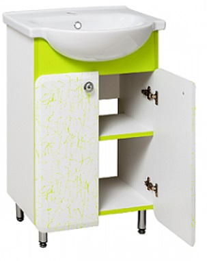 - Тумба под раковину Капри 55: тумба с двумя дверками и внутренней полкой. Петли со встроенным доводчиком.