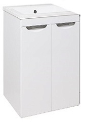 - Тумба с двумя распашными дверками и одной внутренней полкой. Фасад и корпус изготовлены из влагостойкого МДФ, облицованной пленкой ПВХ. Петли со встроенным доводчиком. Тумба устанавливается на 4 регулируемые ножки, скрытые за нижней съемной фальш-панелью.