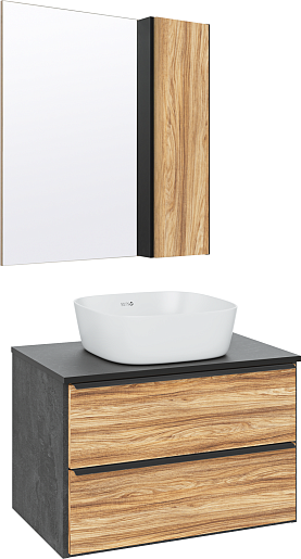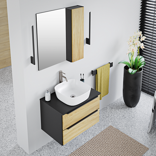 Тумба под раковину Мальта 70 подвесная дуб/черная
