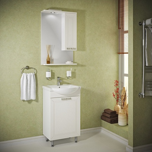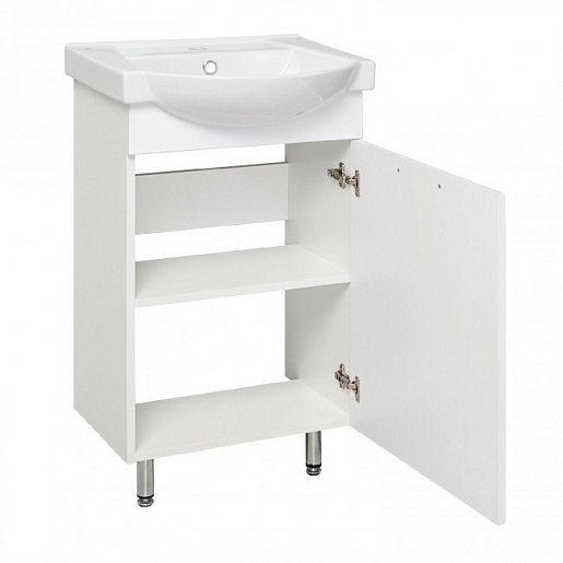 - Тумба под умывальник напольная с одним распашным фасадом, открывающимся слева направо (петли справа). Петли со встроенным доводчиком, ручка - 1 шт., ножки хром - 2 шт., ножки пластик -2 шт.