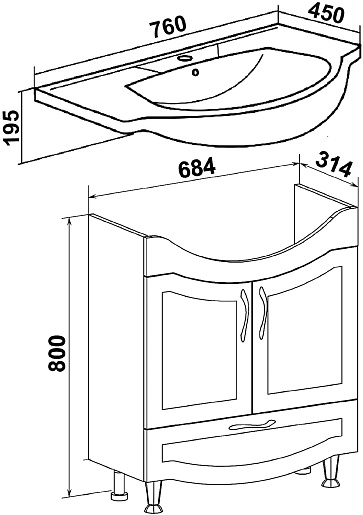 В комплекте: тумба, раковина, ножка (4 шт.).