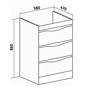 - Тумба с тремя выдвижными ящиками на шариковых направляющих скрытого монтажа с доводчиком. Фасад и корпус изготовлены из влагостойкого МДФ, облицованной пленкой ПВХ. Тумба устанавливается на 4 регулируемые ножки, скрытые за нижней съемной фальш-панелью.