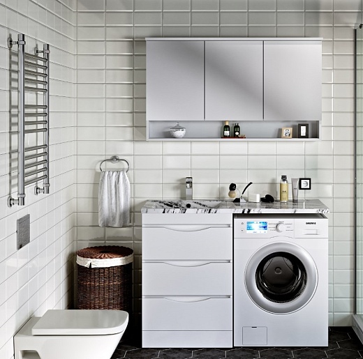 - Тумба с тремя выдвижными ящиками на шариковых направляющих скрытого монтажа с доводчиком. Фасад и корпус изготовлены из влагостойкого МДФ, облицованной пленкой ПВХ. Тумба устанавливается на 4 регулируемые ножки, скрытые за нижней съемной фальш-панелью.
