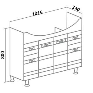 - Тумба под умывальник на ножках с 4-мя распашными дверцами и двумя боковыми выдвижными ящиками. За дверками посередине — одна внутренняя полка. Петли со встроенным доводчиком, ящики на шариковых направляющих полного выдвижения, ручки — 6шт, ножки хром — 2шт, ножки пластик -2шт.