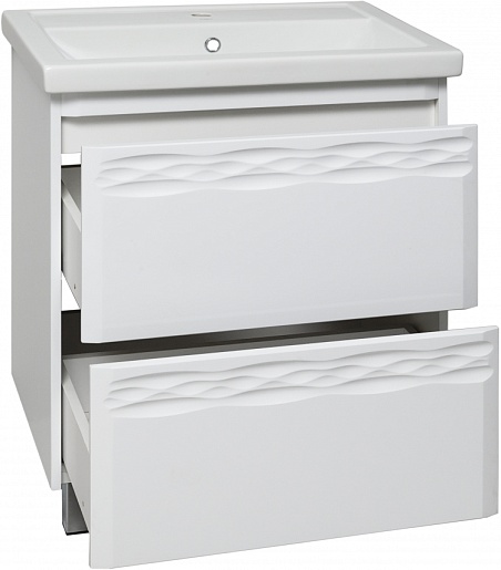- Тумба под раковину Вега 60: Тумба под умывальник на ножках с двумя выдвижными ящиками. Ящики — на шариковых направляющих скрытого монтажа Push-to-open, ножки хром — 2шт, ножки пластик — 2шт.