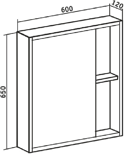 - 1 распашная дверца, 2 открытые полки.