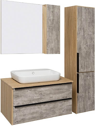 Runo Зеркальный шкаф Мальта 85 дуб/серый