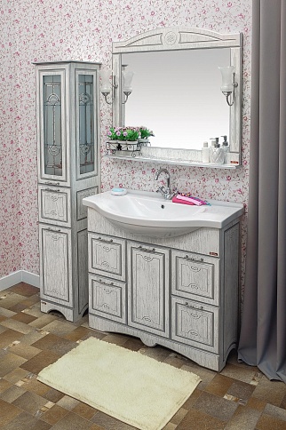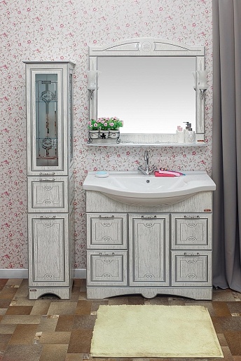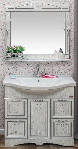 Sanflor Мебель для ванной Адель 100 белая, патина серебро