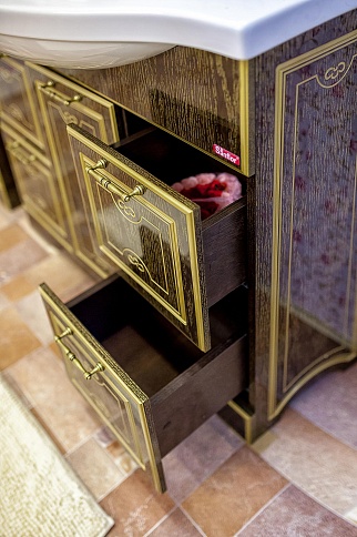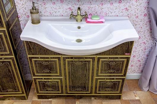 Тумба для умывальника Адель 100 венге, патина золото