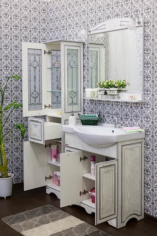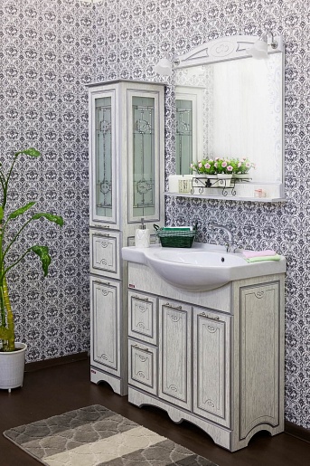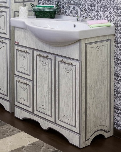 Тумба для умывальника Адель 82 L белая, патина серебро