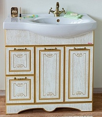 Тумба для умывальника Адель 82 L белая, патина золото