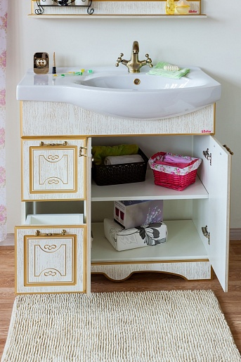 Sanflor Мебель для ванной Адель 82 L белая, патина золото