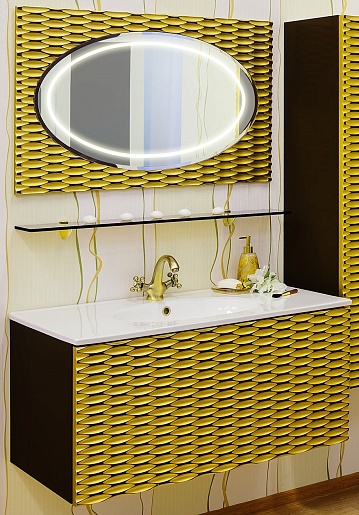 Тумба для умывальника Белла 100 шоколадный, патина золото