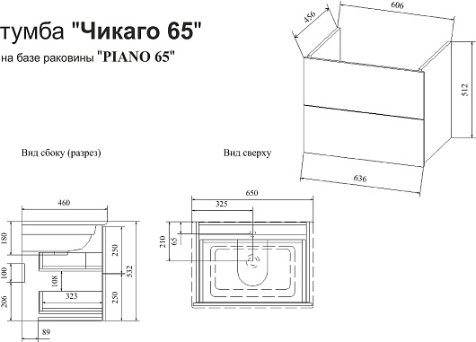 Тумба с раковиной Чикаго 65 Piano - арт. С16780.
