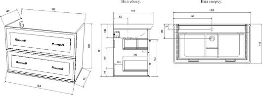 - Тумба под раковину Модена 105: выдвижные фасады, доводчики, фурнитура-состаренное серебро