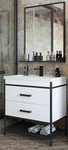 - Тумба под раковину Норд 80: выдвижные фасады, доводчики, открытая полка из металла