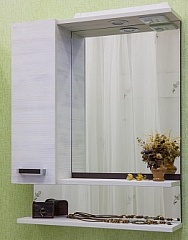- Зеркало-шкаф Техас 60 L, 596х736х146 мм., подсветка, розетка, полочка, шкафчик