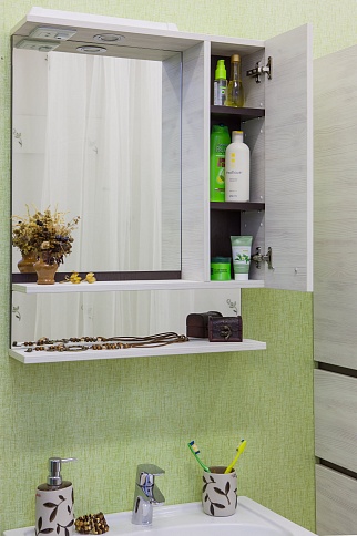 - Зеркало-шкаф Техас 70 R, 690х736х146 мм., подсветка, розетка, полочка, шкафчик