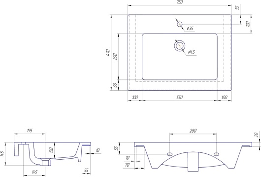 Мебельная раковина Оскар 75
