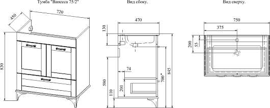 - Тумба под раковину Ванесса 75/2: выдвижной фасад, распашные фасады, доводчики