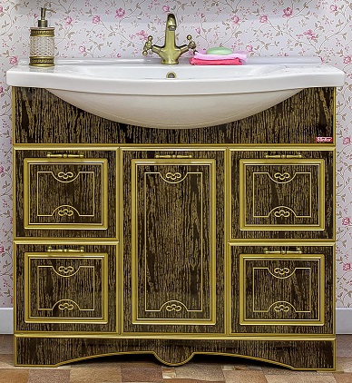 Sanflor Тумба для умывальника Адель 100 венге, патина золото