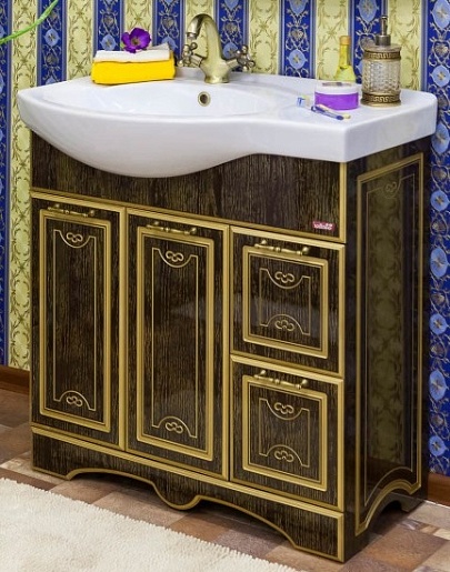 Sanflor Тумба для умывальника Адель 82 R венге, патина золото