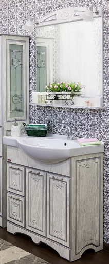 Тумба для умывальника Адель 82 L белая, патина серебро