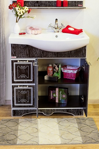 Тумба для умывальника Адель 82 L венге, патина серебро