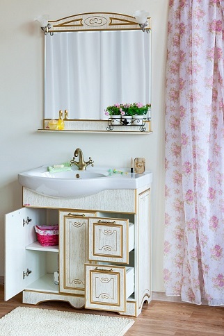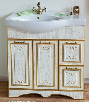 Sanflor Тумба с раковиной Адель 82 R белая, патина золото