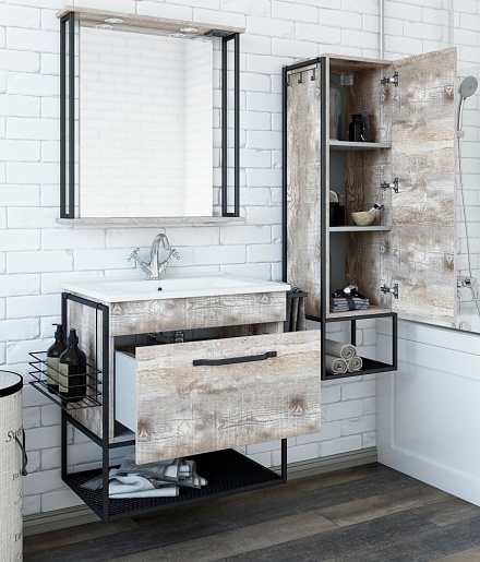 Тумба для умывальника Бруклин 65 бетон пайн, экзотик