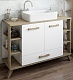 - Тумба под раковину Ингрид 120: выдвижной фасад, распашные фасады, открытые полочки, доводчики