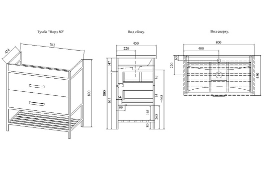 - Тумба под раковину Норд 80: выдвижные фасады, доводчики, открытая полка из металла