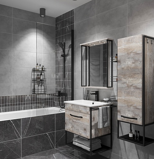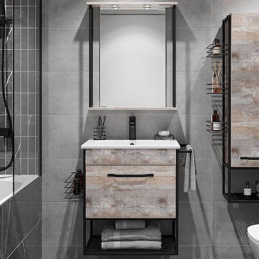 Sanflor Зеркало Бруклин 60 бетон пайн экзотик/черный муар