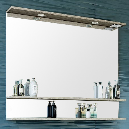 Оснащение зеркала: светодиодная подсветка, розетка, полки, крепления.