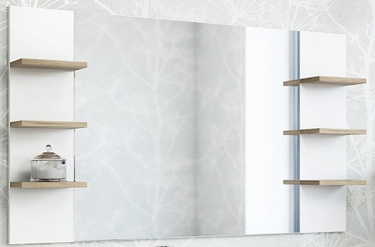 Цвет: швейцарский вяз, белый Оснащение зеркала: зеркальное полотно, полочки, крепления.