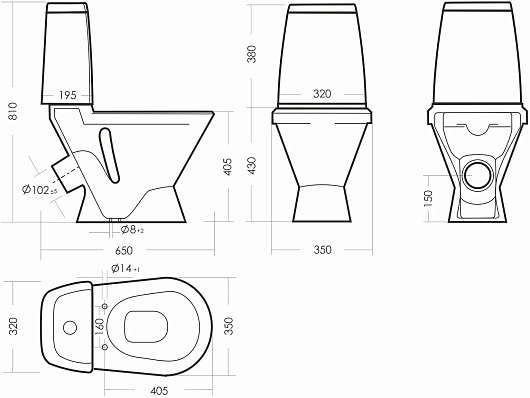 Напольный унитаз-компакт Sanita Кама эконом - арт. WC.CC/Kama/1-P/WHT.G/S1.